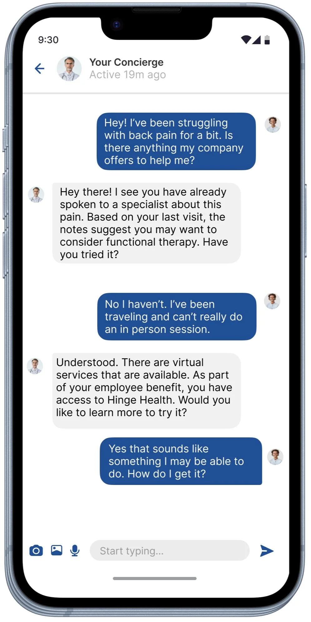 The AI-powered concierge service is like having a team of specialists and a coach by your side help you stay on top of your health goals. The concierge engages you when it’s time to speak to a specialist or when simple life changes can make a huge impact on your health long term.
